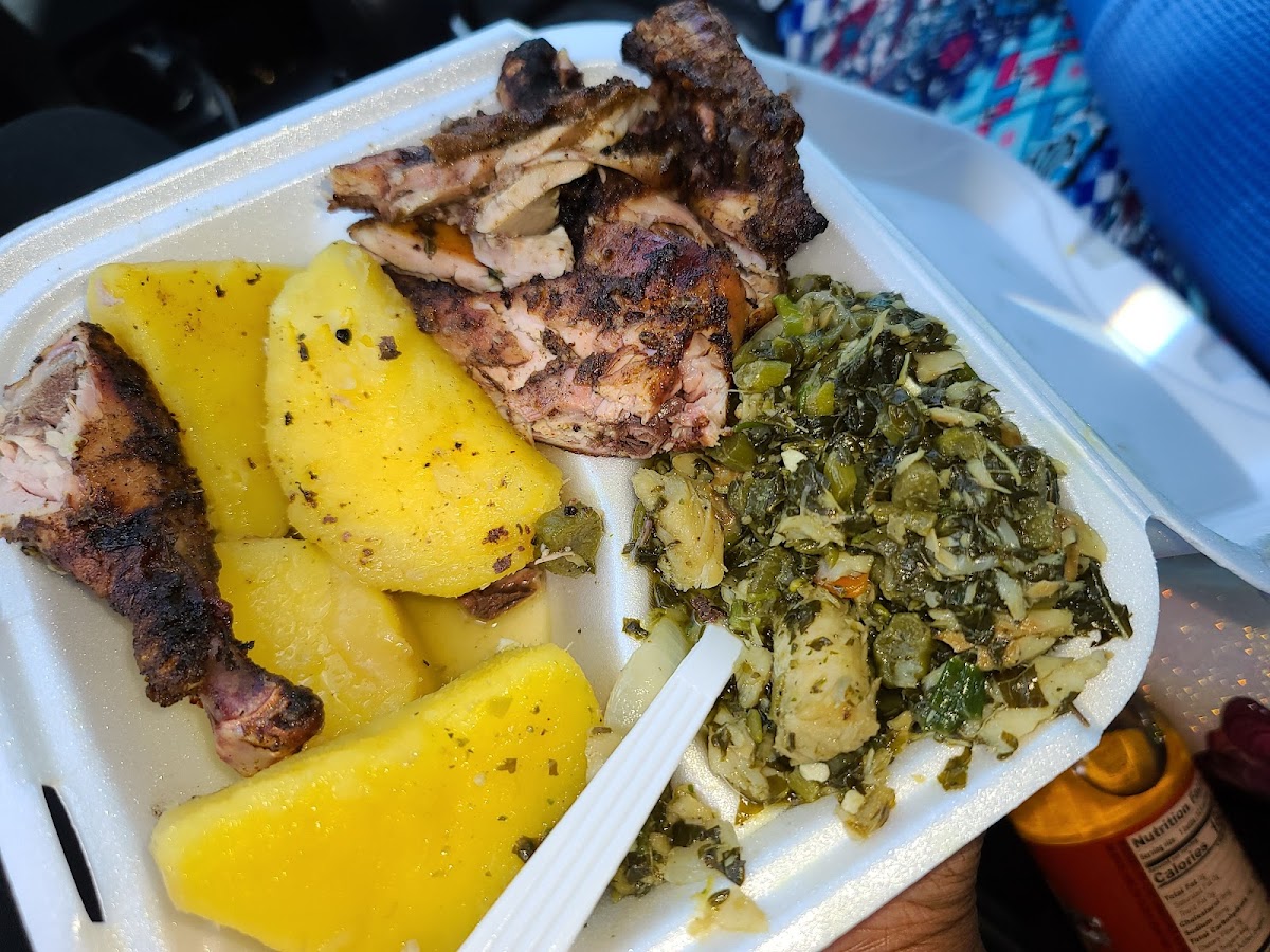 If you're in the mood for seafood, the Steamed Fish is a favorite. Lightly seasoned and steamed with a variety of vegetables, it's a refreshing and satisfying choice. Another popular combo is the Jerk Chicken and Curry Chicken. The two contrasting yet complementary flavors make this dish a hit for those who can't decide between the smoky jerk seasoning and the creamy, savory curry.